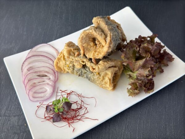 Bratrollmops ist eine herzhafte Spezialität aus gebratenem Hering.