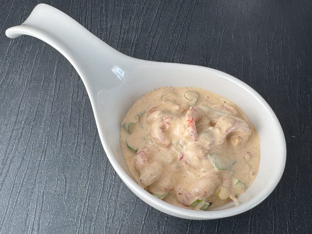 mit einer cremigen Cocktailsauce und einer dezenten asiatischen Würzung.