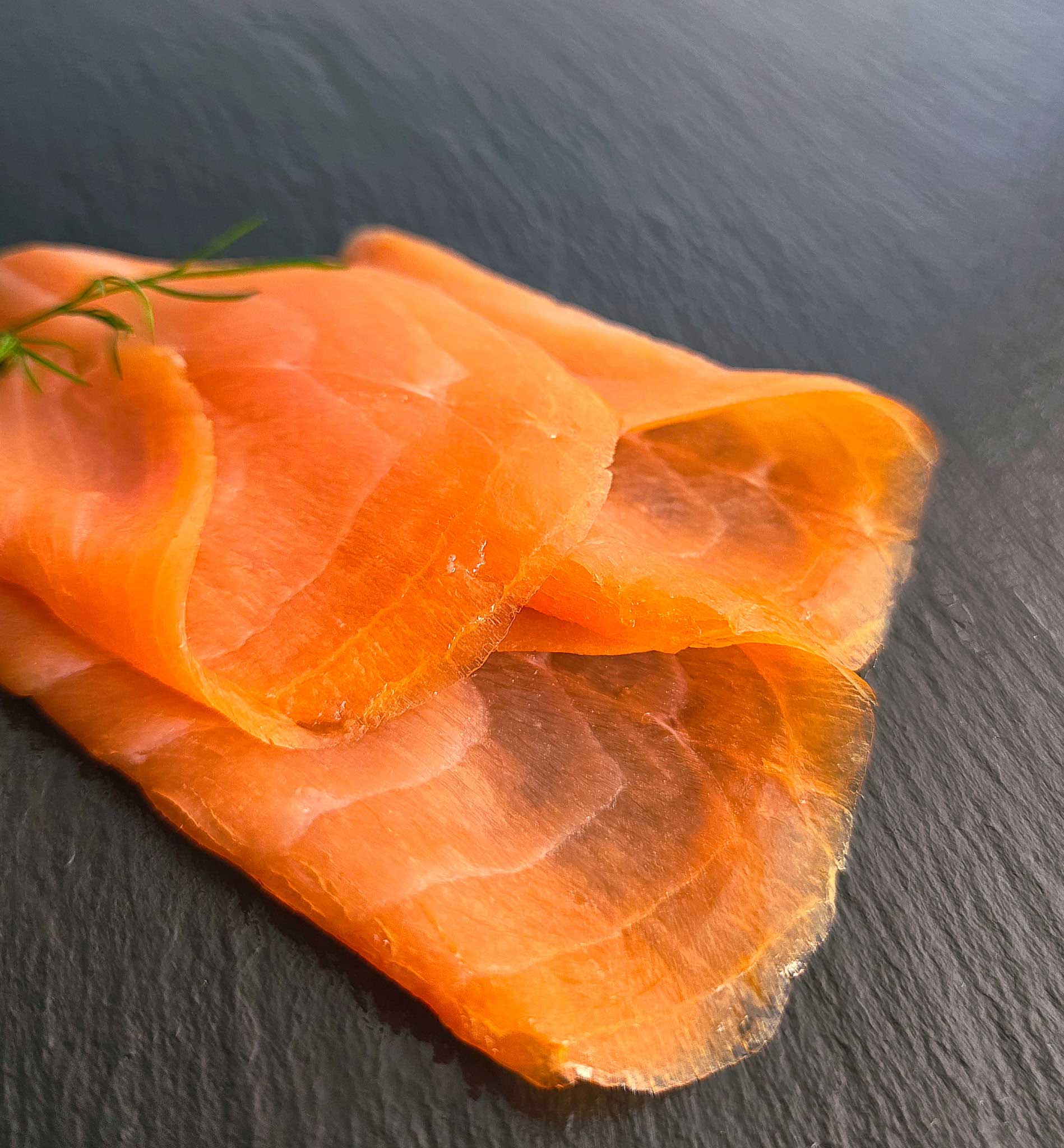 Fein geschnitten und schonend geräuchert – ein charakterstarker Räucherlachs.