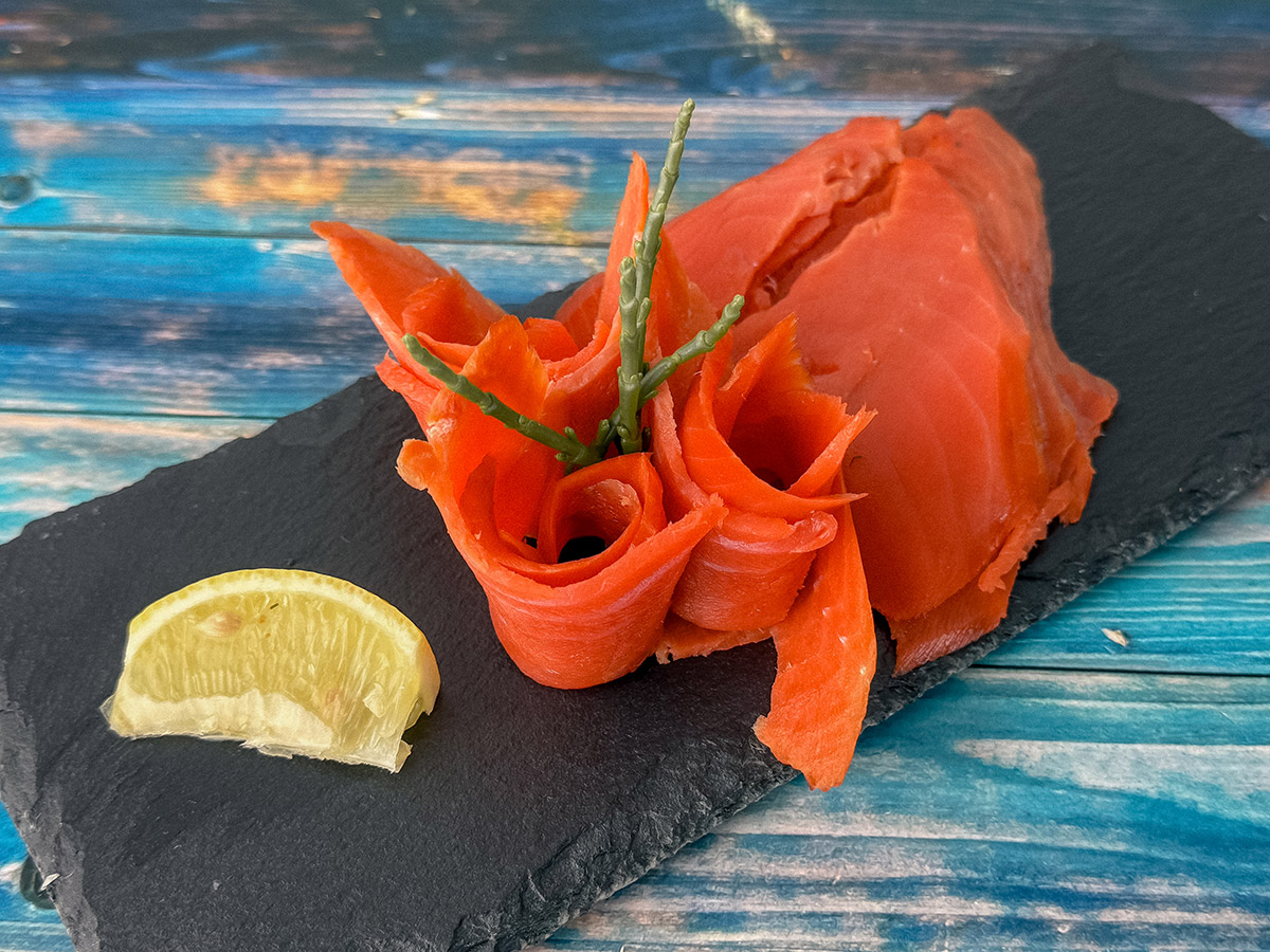 Der Lachs wird in unserer eigenen Räucherei kalt über Buchenholz geräuchert. Buchenholz sorgt für einen milden Rauchgeschmack, der gut zum kräftigen Charakter dieses Wildlachses passt.